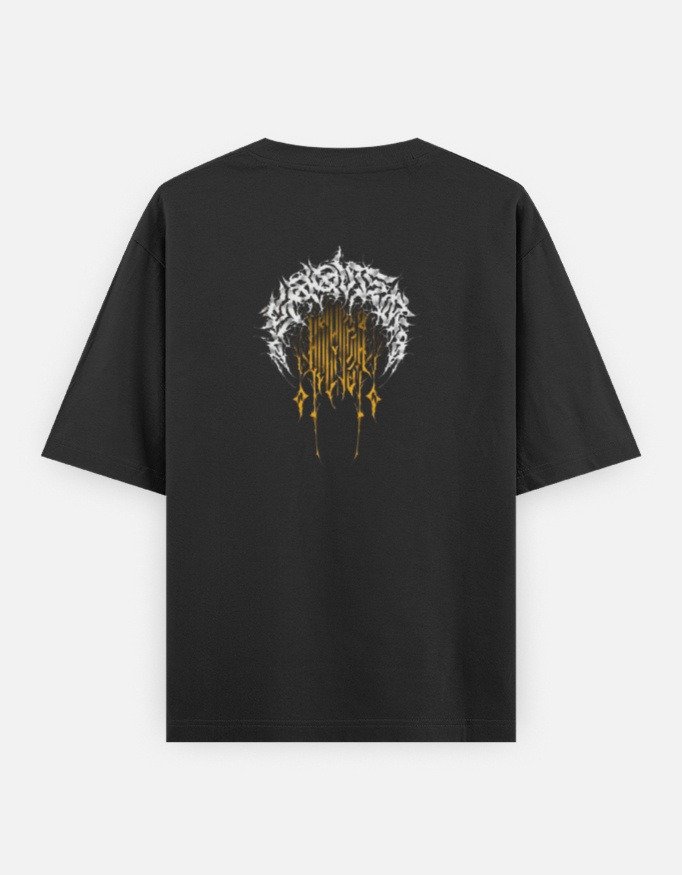 Turn heads with this Oversized Abstract Drip Graphic T-Shirt, designed for fans of bold, artistic, and modern streetwear. The back showcases a unique abstract emblem featuring sharp, edgy white detailing paired with a golden drip-style graphic beneath it—perfect for those who appreciate expressive, contemporary artwork.