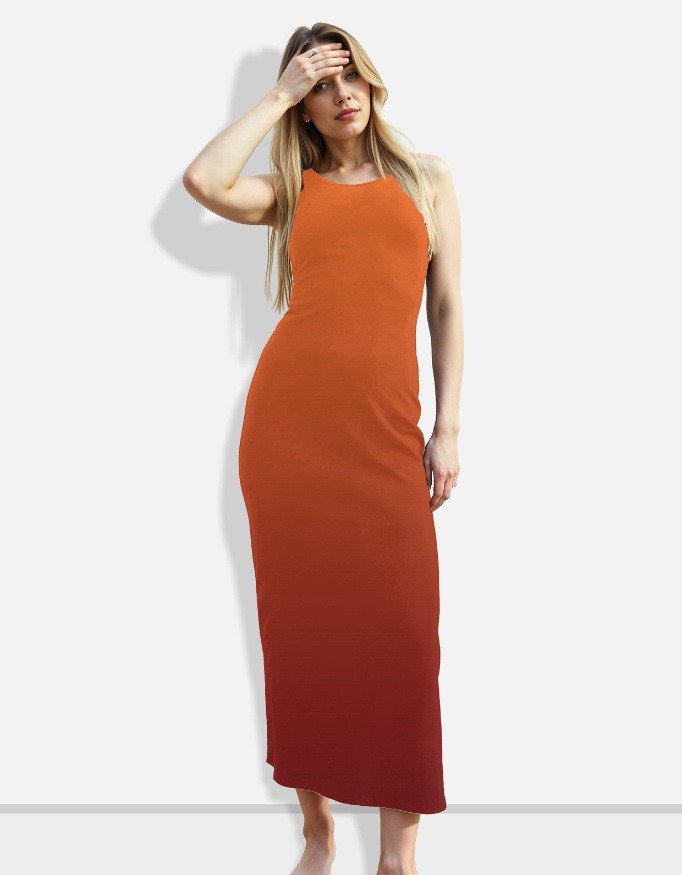 Stand out in style with this women’s burnt orange bodycon maxi dress, crafted for a perfect blend of elegance and comfort. Made from premium 220 GSM poly-spandex fabric, this dress offers superior stretch, a soft and smooth texture, and excellent shape retention that flatters your body effortlessly.