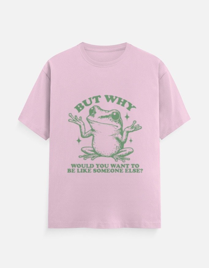 Celebrate originality with this eye-catching “But Why” frog graphic t-shirt. Featuring a charming illustrated frog paired with a bold message about embracing who you are, this design adds personality and positive vibes to your everyday style.