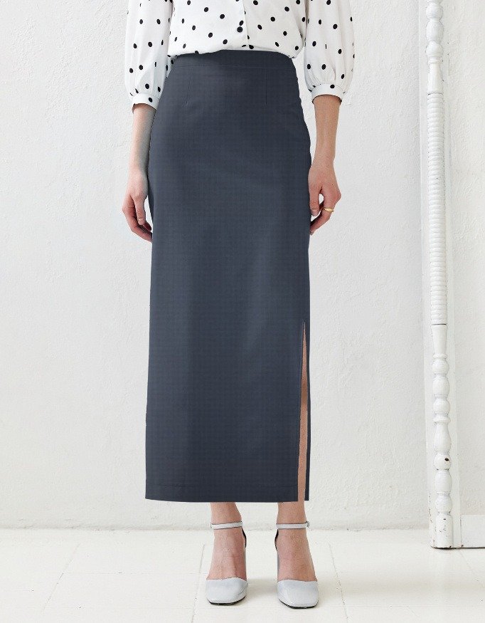 Features a classic pencil silhouette complemented by a subtle side slit, ensuring ease of movement while adding a contemporary edge. The midi length creates a flattering and professional look.