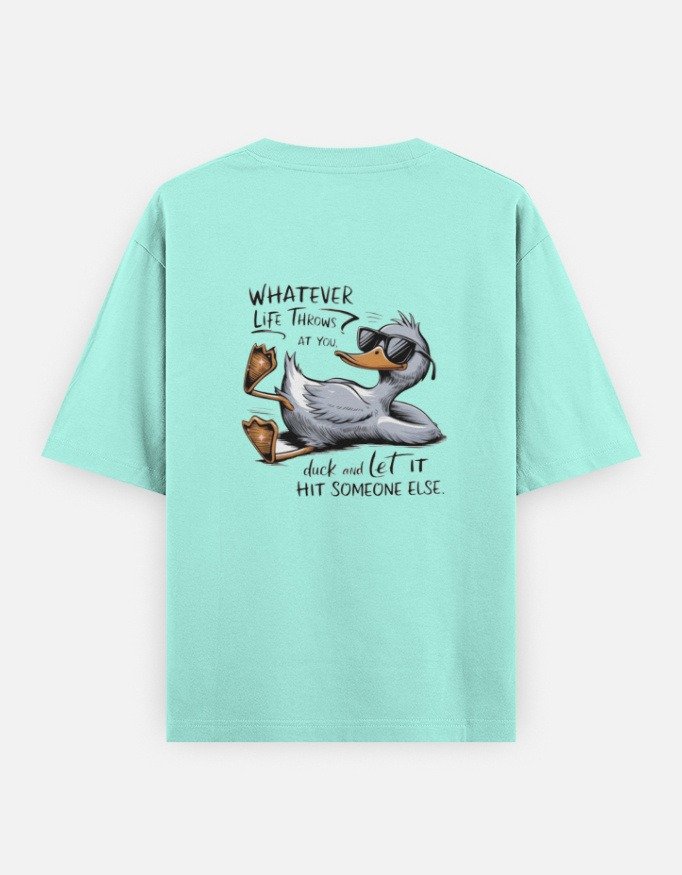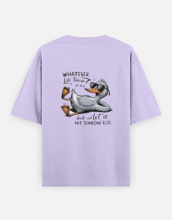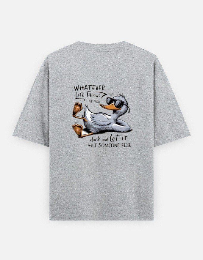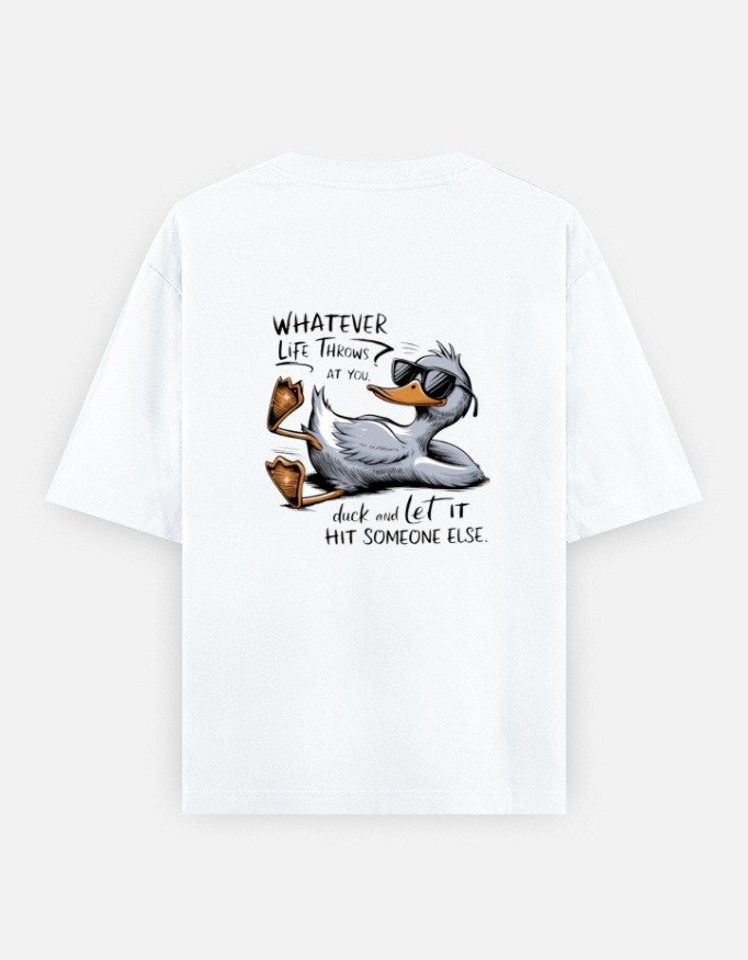 Bring humor and laid-back confidence to your wardrobe with this witty duck graphic oversized t-shirt. Featuring a chill duck illustration paired with a playful quote about dodging life’s curveballs, this design blends sarcasm, attitude, and effortless style in one standout piece.