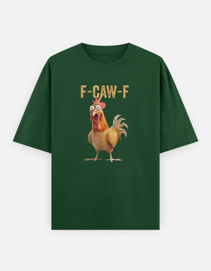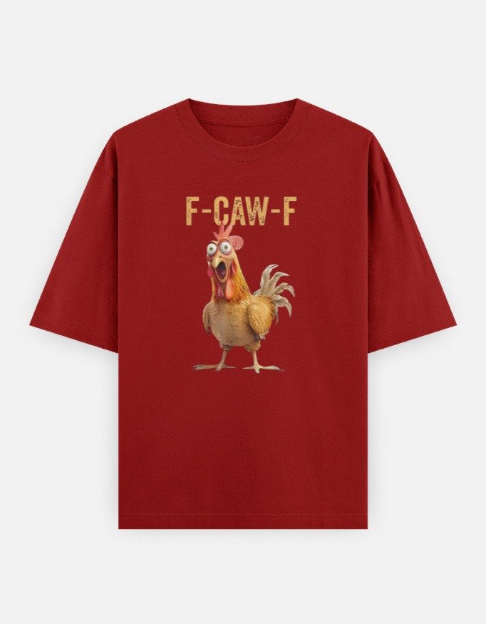 Make a loud statement without saying a word. This βF-CAW-Fβ chicken graphic oversized t-shirt blends playful sarcasm with expressive character design. Featuring a wide-eyed animated chicken with bold typography, this tee brings humor, attitude, and standout personality to your everyday wardrobe.