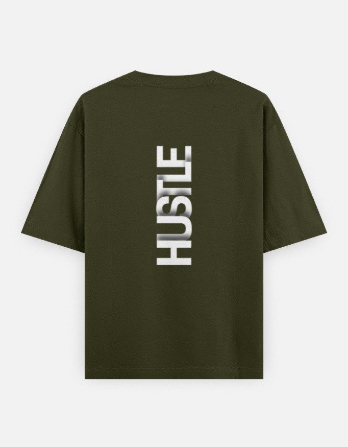 HUSTLE Print Oversized T-Shirt (Back Design)