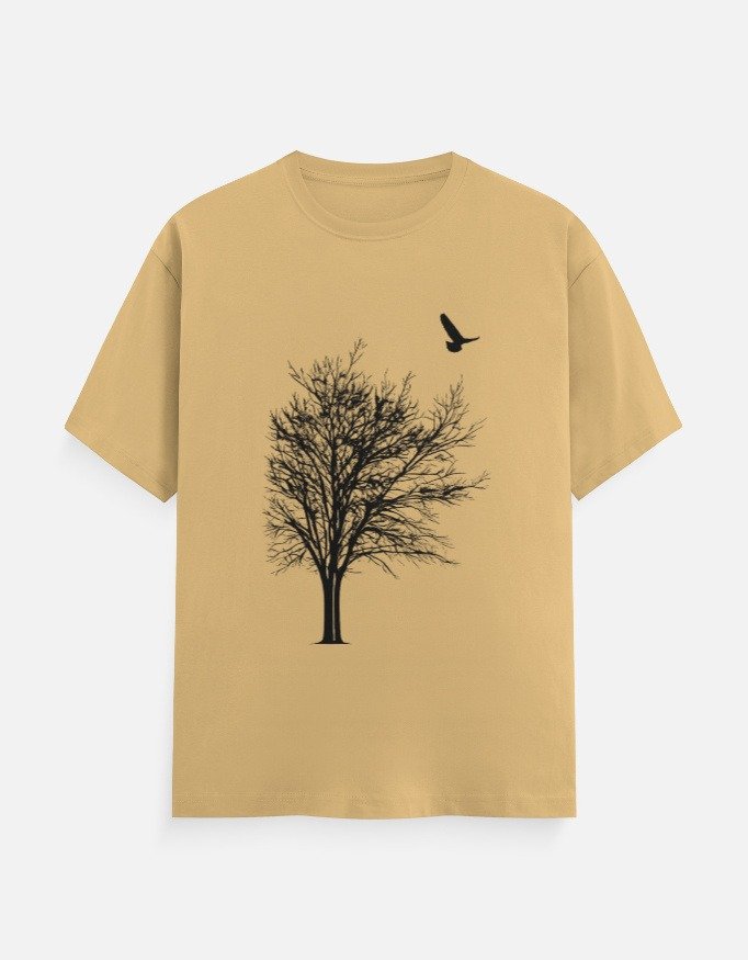 Keep it simple and stylish with this minimal tree and bird graphic t-shirt. Made from 100% cotton with 180 GSM fabric, it offers lightweight comfort and a perfect regular fit for everyday wear.