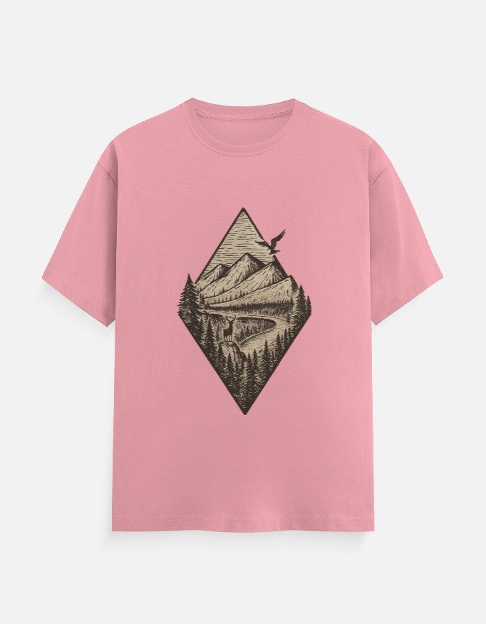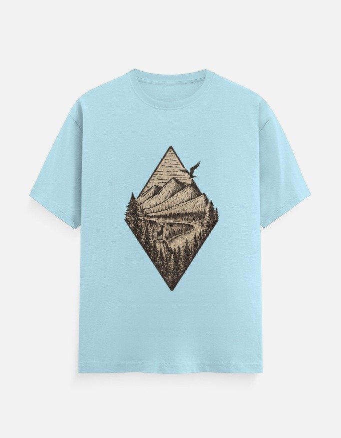 Bring the spirit of adventure to your wardrobe with this mountain graphic cotton T-shirt, designed for nature lovers and minimal-style enthusiasts. The detailed line art showcases mountains, trees, and open skies—capturing a calm, wanderlust aesthetic that never goes out of style.