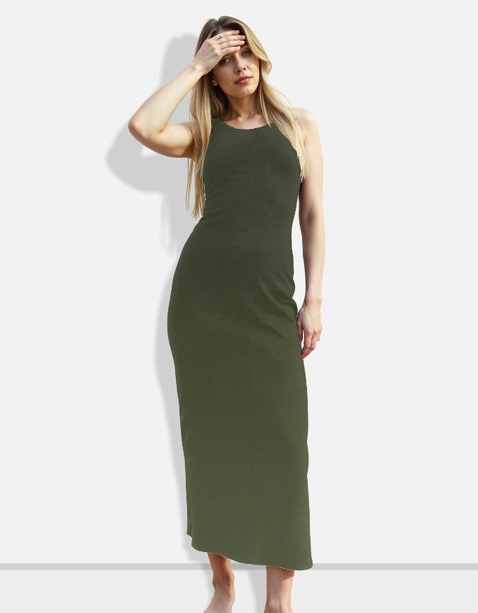 Elevate your everyday and occasion wear with this women’s olive green bodycon maxi dress, crafted for women who value both style and comfort. Made from premium 220 GSM poly-spandex fabric, the dress offers exceptional stretch, a smooth finish, and long-lasting shape retention that hugs your body perfectly.