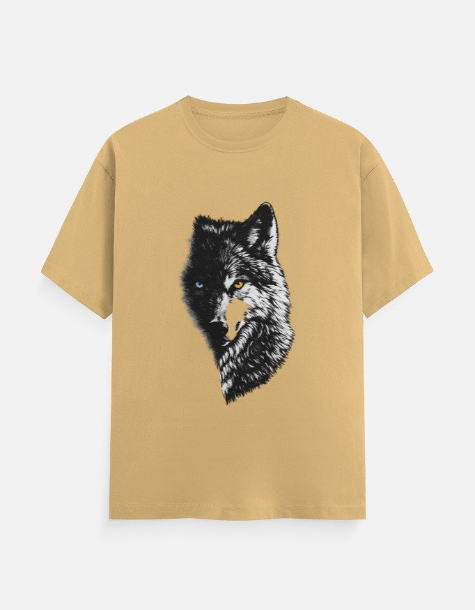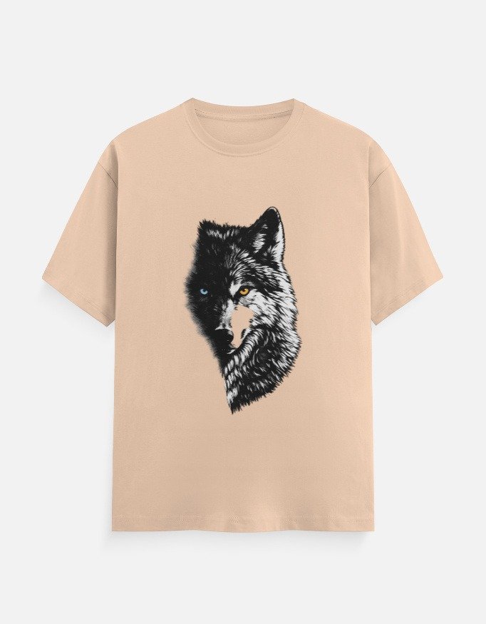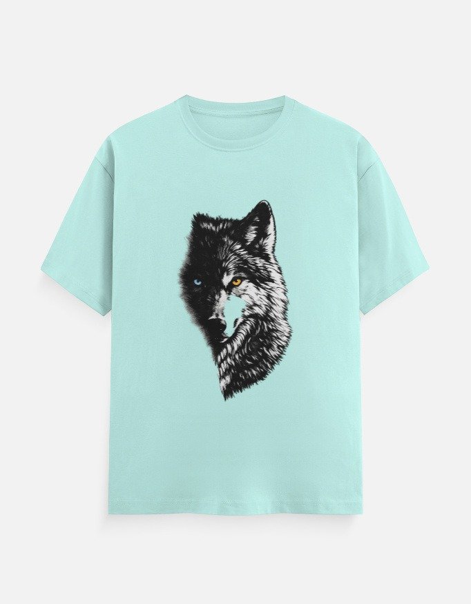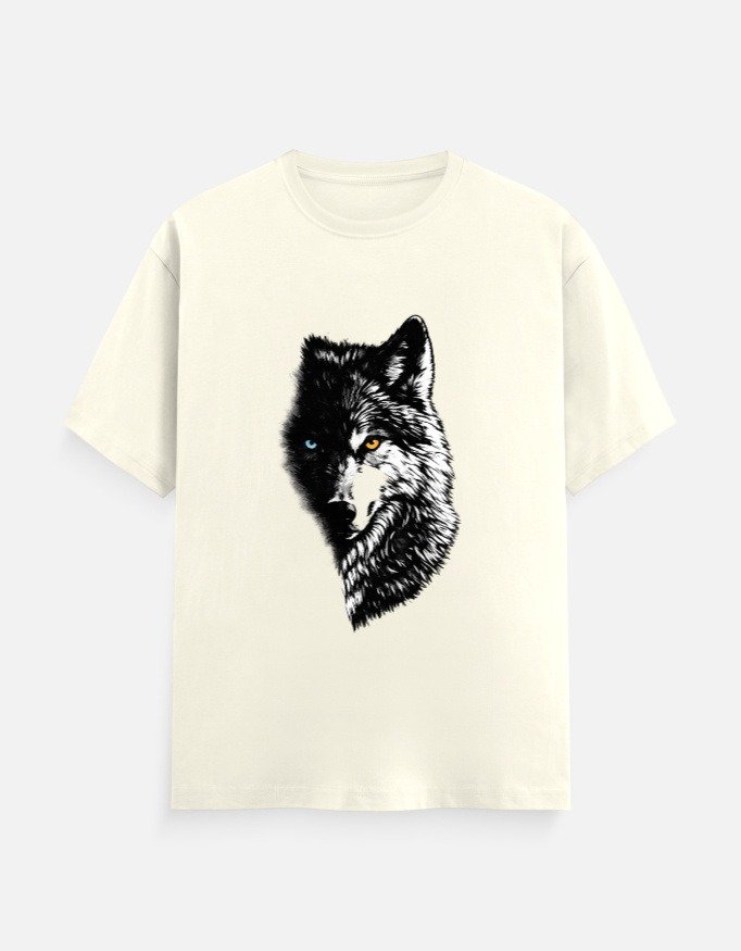 Make a statement with this eye-catching wolf graphic t-shirt designed for comfort and everyday versatility. Featuring a striking half-face wolf print with contrasting eyes, this tee adds a bold and stylish touch to your casual wardrobe.